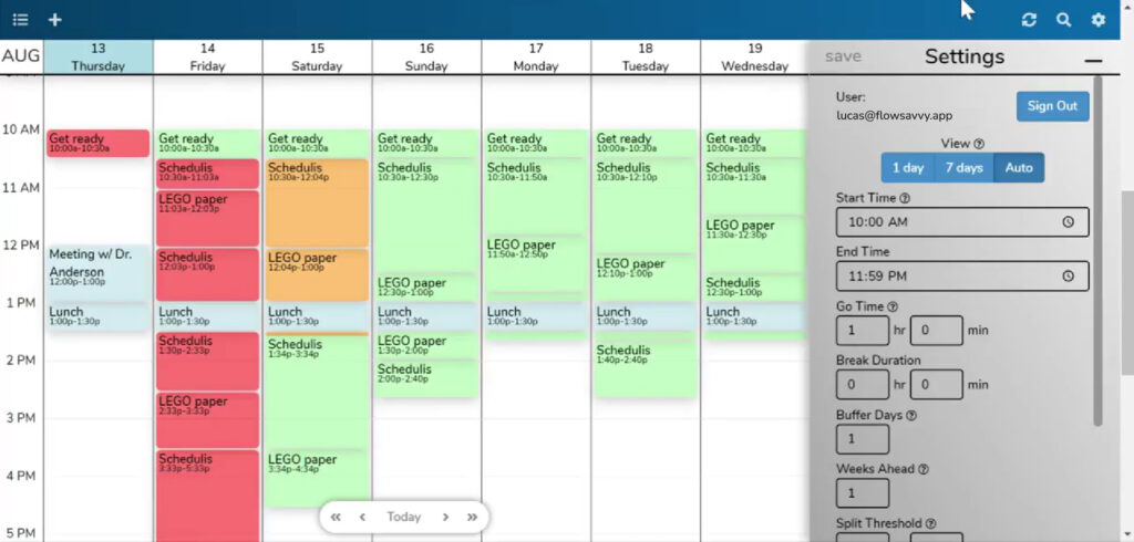 Fast forward to 2025. FlowSavvy is an established app, and we are committed to delivering not only great automatic scheduling features, but also an excellent calendar experience. Because of that, it was time to break away from the patterns we had established and use a more familiar and modern layout.