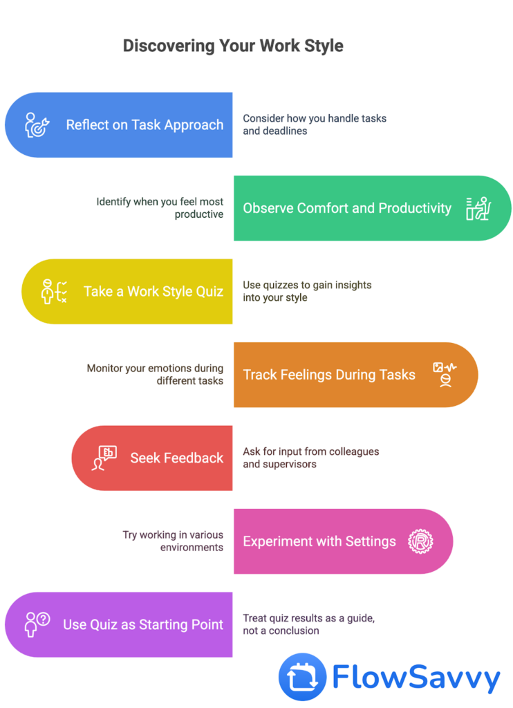 Next, pay attention to when you feel most comfortable and productive. Are you more focused when working alone, or do you enjoy group discussions? Think about times when work felt easy or enjoyable. That can show you what style fits best.