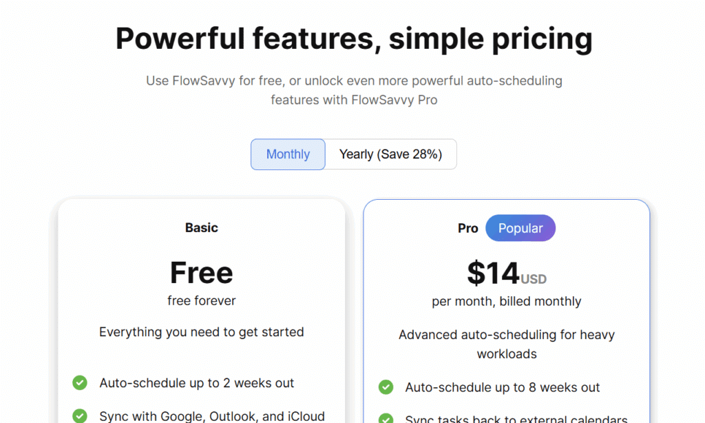 Users who move from SkedPal to FlowSavvy often mention how streamlined FlowSavvy feels in comparison while still delivering powerful auto-scheduling, all at a significantly lower price point.