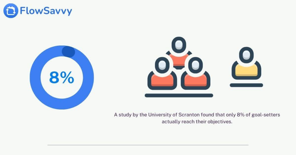 Did you know that 92% of people fail to achieve their goals? A study by the University of Scranton found that only 8% of goal-setters actually reach their objectives. (Source)