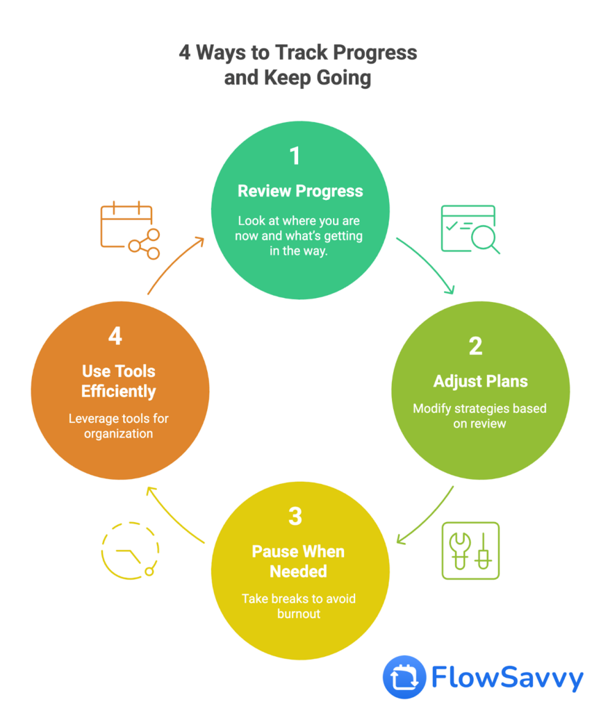 Checkpoints help you see where you are and what’s working. If your goal is to finish a short online course in three months, check your progress every two weeks. These pauses give you a chance to catch problems early and celebrate small wins along the way.
