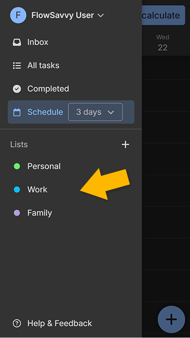 Previously, FlowSavvy used tags to categorize tasks. While tags were a powerful way to organize tasks in a variety of ways, they didn’t quite match how people naturally think about their tasks. It turns out that most of us don’t want to just label our tasks, we want to feel like we’re putting them somewhere. Lists make that possible. You can now put tasks in lists and then, instead of filtering the to-do list by a tag, you can go directly to a list through the left menu to view all the tasks within it.