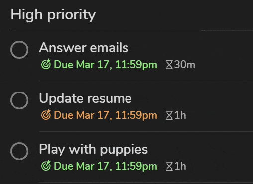 1. “Go with the flow” people: Don’t care what order your tasks get scheduled in? Every task starts as “Normal priority”, so you can completely ignore the priority system and just do your tasks in the order they’re scheduled in (which is usually in order of due date).